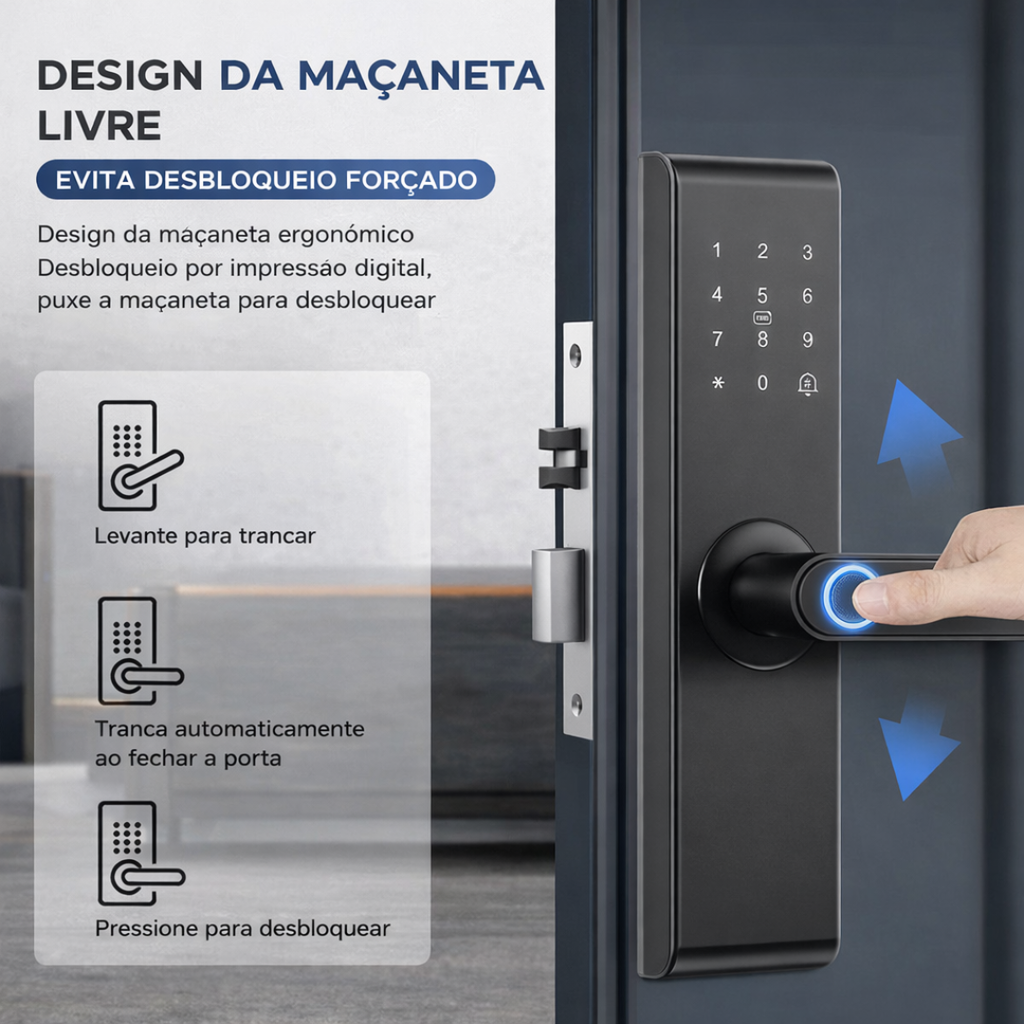 • 🔓 Abertura por impressão digital rápida e precisa